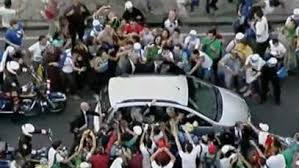 (foto: o Papa Francisco depois da chegada ao Rio de Janeiro, cercado pela multidão; reproduzida daqui)